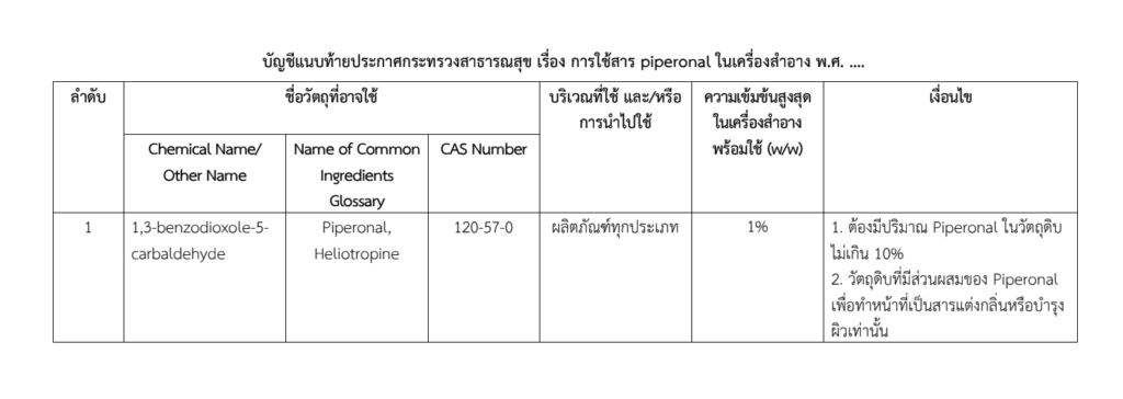 【タイ化粧品】タイFDAは「Piperonal(ピペロナール)」成分の化粧品成分規制草案に関する意見募集を公表