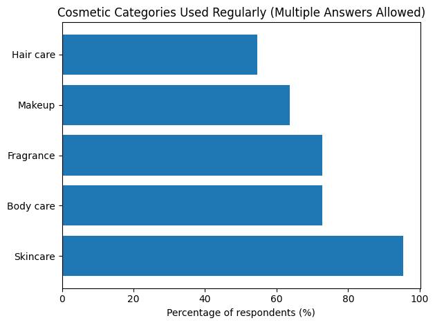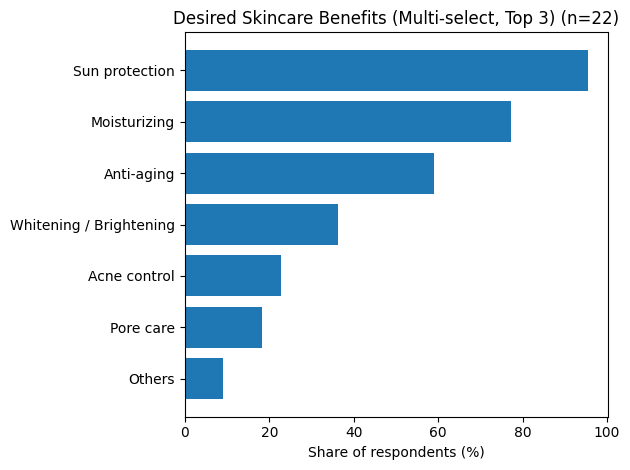 普段使用している化粧品カテゴリーではスキンケアがほぼ全員に浸透しており、関心軸においてもスキンケアが最も重視されている。注目すべき点として、メイクアップ単独への関心はごく少数であり、インド市場では「肌そのものの改善」が美容の中心的価値であることが示唆される。