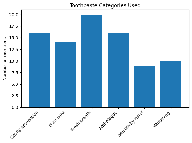 歯磨き粉において「口臭ケア」を最も重視しており、次いで虫歯予防や歯垢防止、歯周ケアといった基本的なオーラルヘルス機能への関心が高い結果となった。
